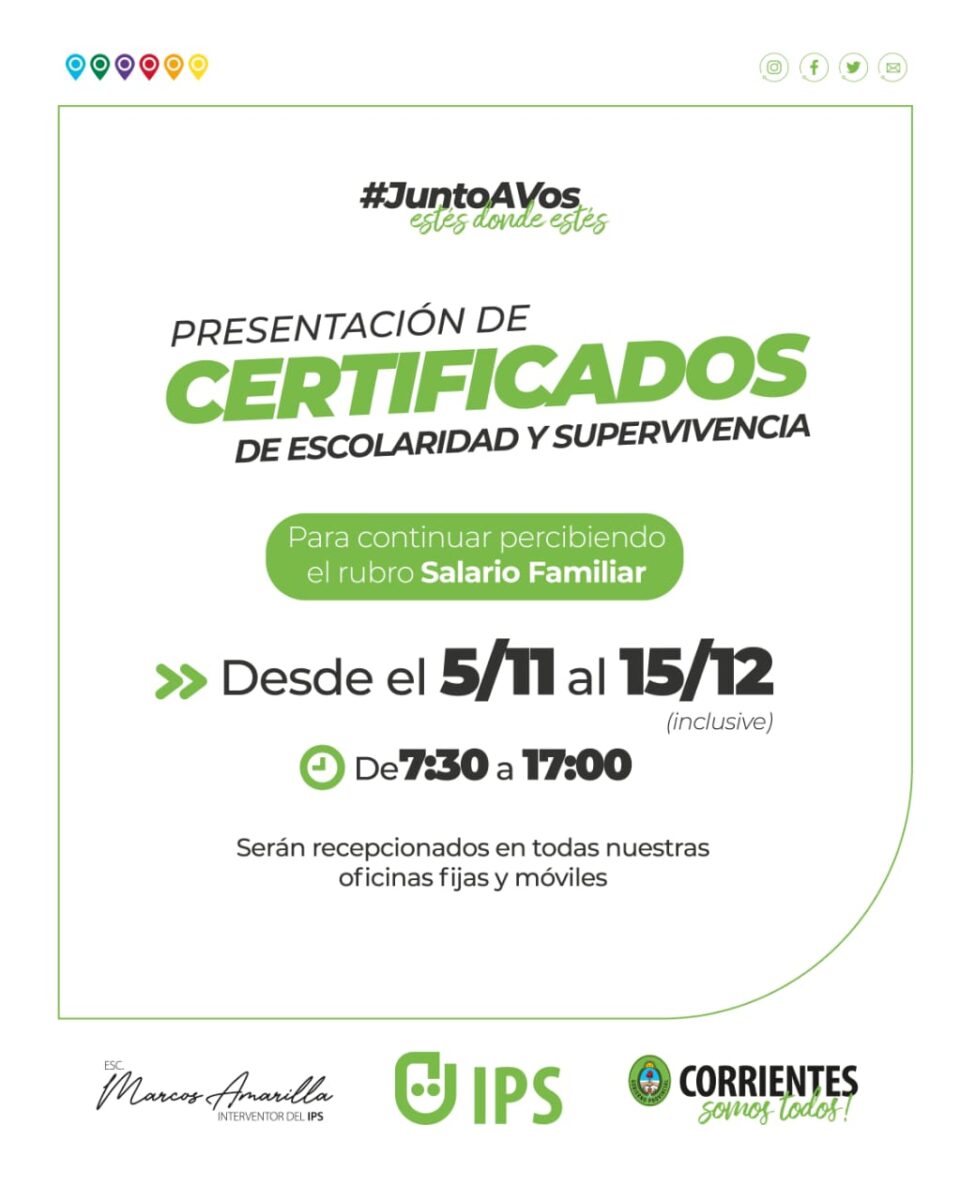 Desde el próximo 5 de noviembre, los beneficiarios que perciben salario familiar podrán hacer la presentación de los certificados de escolaridad y supervivencia necesarios para percibir dicho beneficio. La medida fue anunciada por el titular del organismo, Esc. Marcos Amarilla tras firmar la resolución correspondiente.