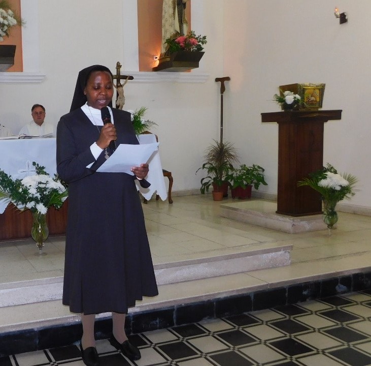 En su acción de gracias la hermana Musuvi expresó, “Alabado sea el nombre de Jesús, eternamente”, hace dos dos y cuatro meses que estoy acá y “quiero dar gracias al señor por su amor”.