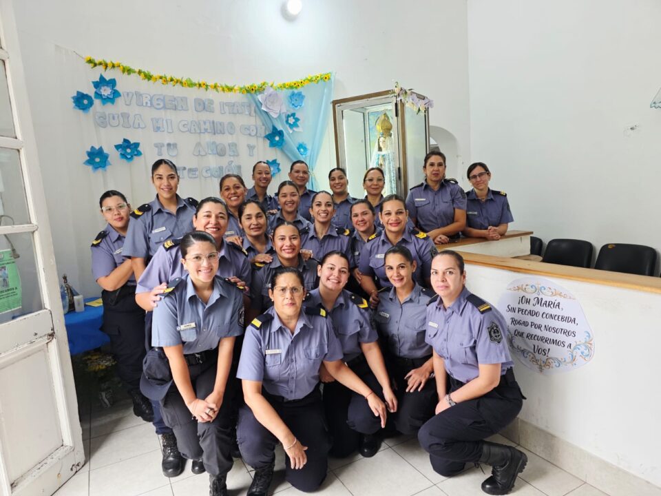 Durante la permanencia de la Virgen en la comisaría, se vivieron momentos de oración y agradecimiento, pidiendo especialmente por la protección de las mujeres y jóvenes que asisten a esa comisaría, así como por las familias.
