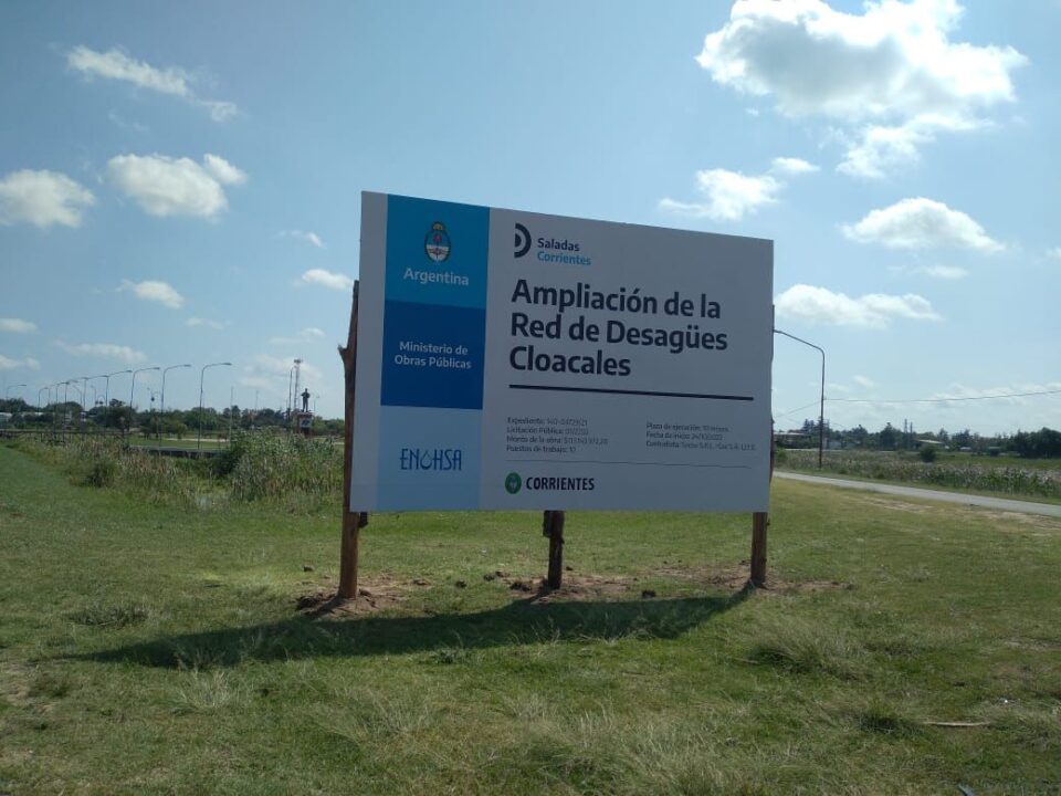 El Ministerio de Obras Públicas de la Nación, a través del Ente Nacional De Obras Hídricas de Saneamiento (ENOHSA), comenzó a ejecutar una nueva obra para la ampliación de redes troncales y conexiones domiciliarias de cloaca en la ciudad de Saladas por $115,2 millones, con un plazo de ejecución de 10 meses.