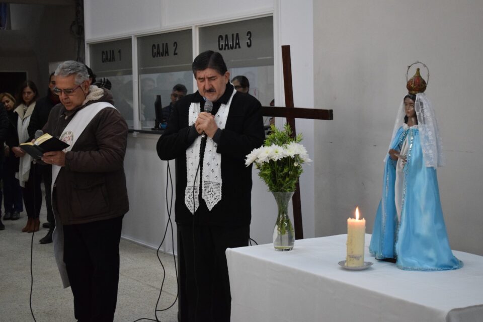 En una fría y soleada mañana, la imagen peregrina de Nuestra Señora de Itatí hizo su entrada al edificio municipal este lunes a las 8:30horas, acompañada por el vicario general de la Diócesis, Juan Carlos Mendoza, y el diácono Armando Leguizamón. Su presencia se concretó en el marco de las actividades de la novena que se celebra en la Parroquia Itatí.