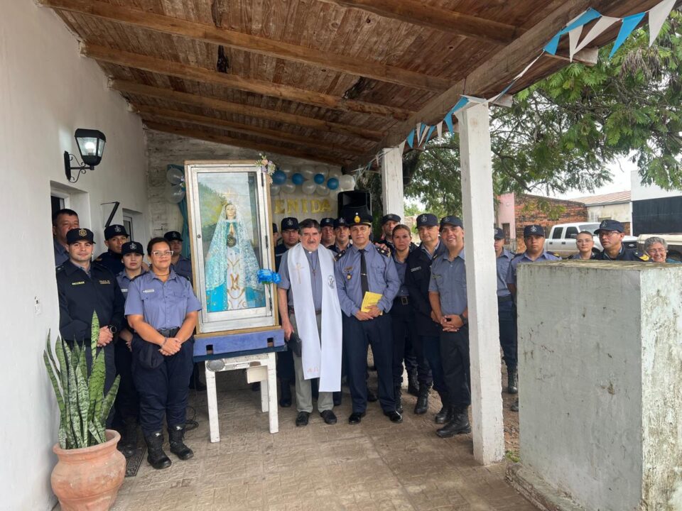 Bajo una persistente llovizna en la mañana del jueves, el personal policial y los vecinos de la jurisdicción se unieron en oración para recibir a la Imagen Peregrina de la Tierna Madre de Itatí. La Imagen Peregrina de Nuestra Señora de Itatí visitó el jueves las instalaciones de la Comisaría distrito tercera de Goya.