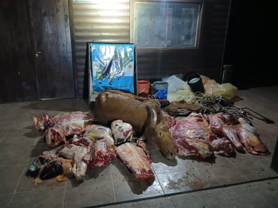 La Policía Rural y Ecológica de Lavalle detectó ayer por la tarde una faena clandestina en el paraje La Loma, tras recibir un aviso anónimo que alertó sobre la actividad ilegal. Al llegar al lugar, los agentes encontraron a dos hombres realizando la carneada en un monte. Se secuestraron 165 kilos de carne ya fraccionada que estaban dentro de un automóvil y una vaquilla de 180 kilos lista para ser depostada, perteneciente al productor Hilarión G.