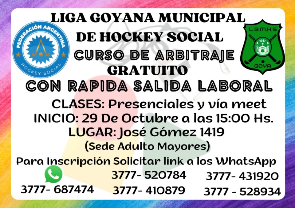 La Liga Goyana de este deporte ofrece para el próximo 29 de octubre un Curso de Arbitraje para el Hockey, de manera gratuita, con una rápida salida laboral.