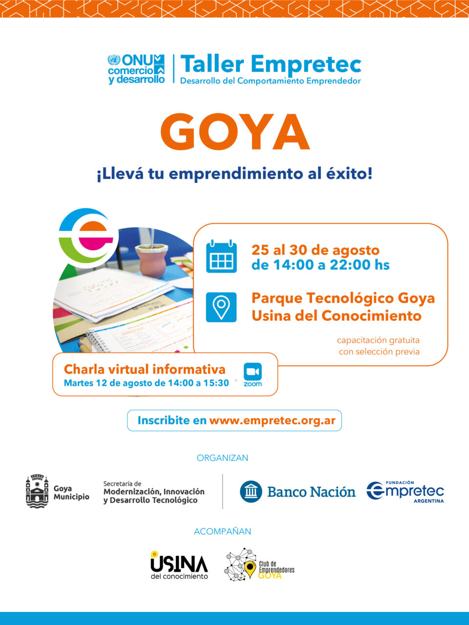 En conjunto con la Municipalidad de Goya y con el acompañamiento del Club de Emprendedores de Goya y la Usina del Conocimiento, Fundación Empretec organizará la primera edición local del Taller de Desarrollo del Comportamiento Emprendedor