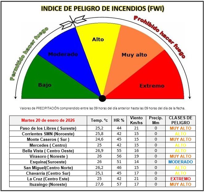 Paso de los Libres, Monte Caseros, Virasoro e Ituzaingó, con riesgo muy alto. Mientras que la ciudad de Corrientes, Bella Vista, Mercedes, San Miguel y Chavarría; tienen un índice alto de posibles focos de incendio.