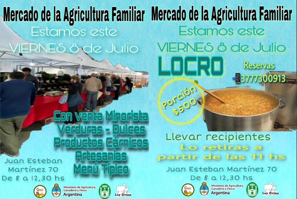 Este viernes 8 de julio de 08,00 a 12,30, los Mercados de la Agricultura Familiar ofrecerán a la comunidad sus productos en la modalidad de ventas minoristas, y se sumará a ellos «Gemma Pescados», en Juan E Martínez 70 (al lado de INVICO).