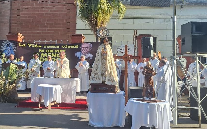 Finalmente, nos invitó a mirar el testimonio de nuestros patronos: Santa Teresita, que oró incansablemente por las misiones; San Francisco Javier y Mama Antula, incansables caminantes. Todos ellos vivieron «en salida», porque Jesús era el centro de sus vidas.