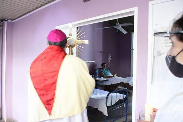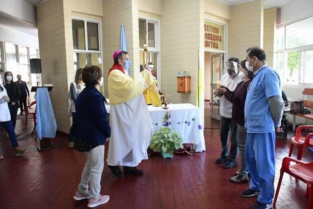 Al final de la celebración eucarística, el obispo recorrió el hospital, ingresando a diversos sectores, bendiciendo con el Santísimo Sacramento.