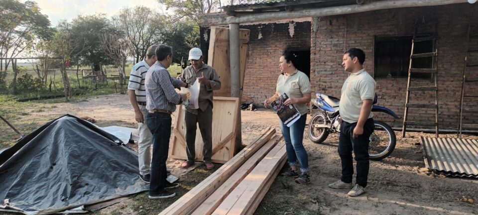 La familia Verón sufrió la destrucción de su vivienda el pasado fin de semana, a la asistencia de colchones, camas, frazadas, módulos alimentarios del día lunes, en la fecha se acercaron materiales, tirantes y clavadoras para la reparación del techo de la habitación afectada, además de aberturas, ventana y puerta para la misma.