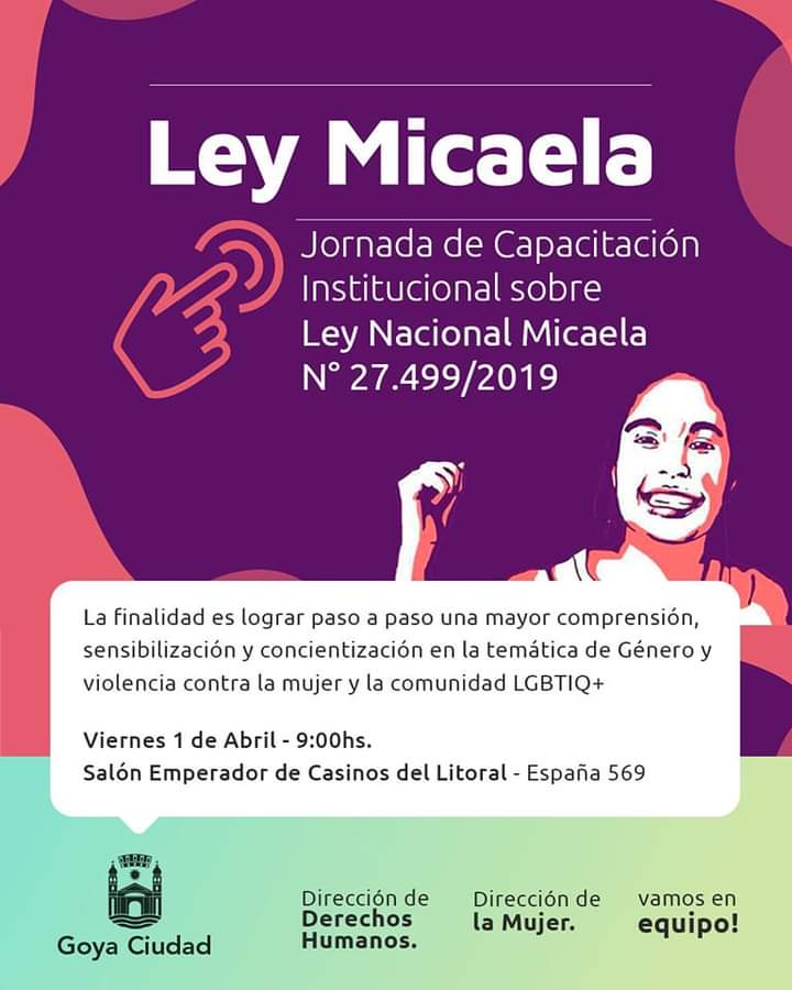 Este martes 29 a las 10.30 hs. en el Salón de Acuerdos del Palacio Comunal se realizará una conferencia de prensa sobre Ley Micaela, Ley Nacional 27.499.