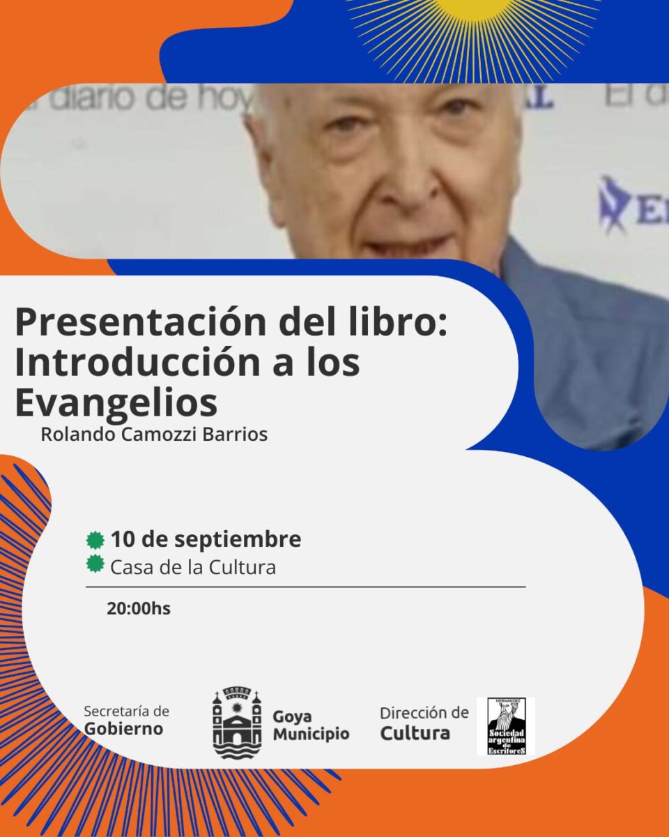 Con el acompañamiento de la Municipalidad de Goya por medio de la Secretaría de Gobierno, desde la Dirección de Cultura, Rolando Camozzi Barrios presentará «Introducción a los evangelios», el 10 de septiembre a las 20 horas en la Casa de la Cultura.