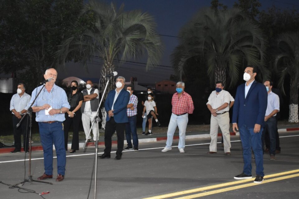 El Gobernador de la Provincia de Corrientes, Doctor Gustavo Valdés, visitó la ciudad de Goya este martes y, en horas de la tarde, participó de la inauguración de varias obras principales con sus complementarias, entre ellas de pavimentación de la calle Gerardo Pando en barrio Scófano y de la avenida Mazzanti. La primera lograda a través del recuperado Mita y Mita, programa de mutua confianza entre municipio y vecinos; y la segunda con participación de la provincia, y que además de la pavimentación y construcción de veredas incluye mejoras a bajo nivel del suelo y por sobre el mismo, con cañerías para el drenaje de agua estacional producto de lluvias, por un lado, y lúmenes que mejoran la visibilidad, por otro. Además de la nueva semaforización que contribuirá con la seguridad vial de la transitada avenida de acceso a Goya.