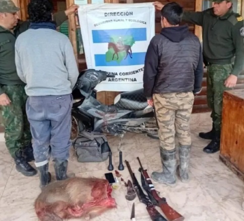 Se trata de dos hombres identificados como Javier Aníbal Q. y Ernesto Raúl Q., padre e hijo, que fueron sorprendidos en la zona rural, cercana a la ciudad de Esquina, saliendo de un campo ajeno donde habían cazado y faenado un carpincho que traían en una bolsa a bordo de una motocicleta en la que se desplazaban.
