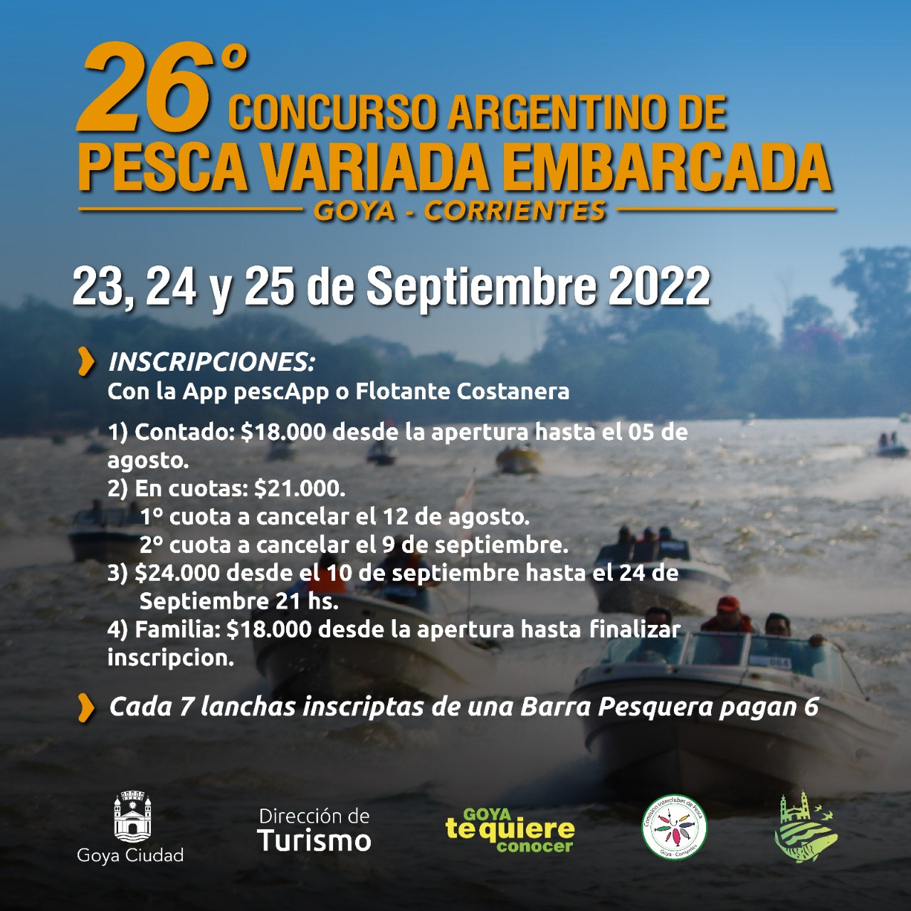 «El precio de la inscripción es de $18.000 hasta el 5 de agosto, se pueden inscribir a través de PESCAPP y deben enviar los comprobantes de transferencia más el numero de equipo que le adjudica el sistema, lo mismo para los inscriptos en familias, para nosotros tener anotados que se inscribieron como familias y no cometer ningún error»