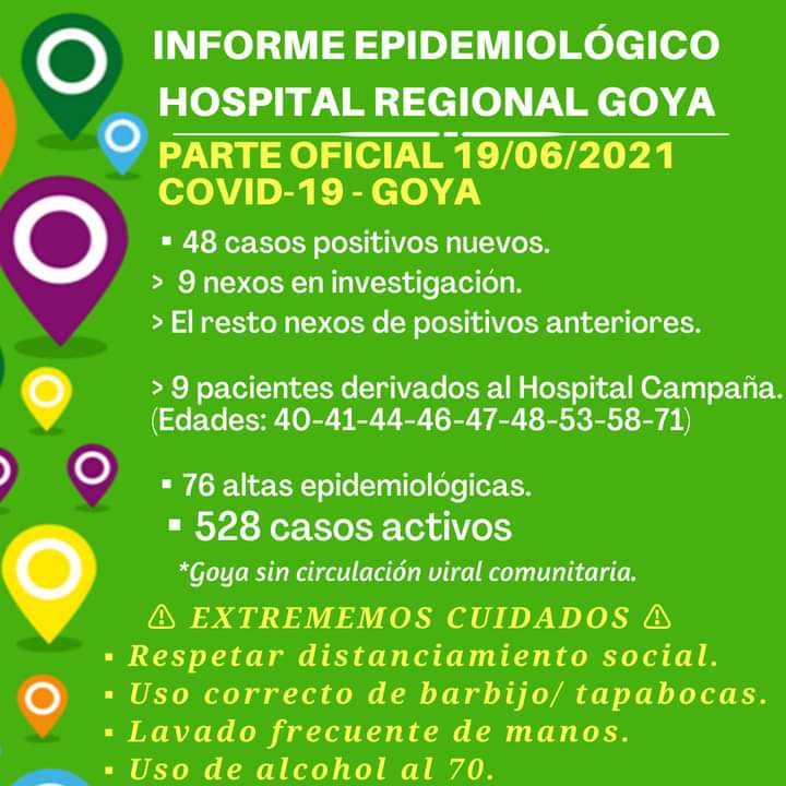 NoticiasPor segundo día, trasladan a 9 goyanos al Campaña 19 junio, 202119 junio, 2021 El parte oficial del Hospital de Goya indica que se registraron 48 nuevos casos de coronavirus en la ciudad. Además por segunda jornada consecutiva trasladaron a 9 pacientes al Hospital de Campaña.