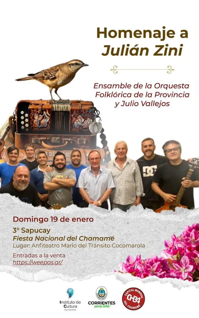El Dr. Julio Vallejos habló con el programa Desayuno por Radio Dos. Contó detalles sobre el homenaje que realizarán este Domingo 19 en el marco de la Fiesta Nacional del Chamamé. Junto al Ensamble de la Orquesta Folklórica de la Provincia brindarán un show dedicado a Julián Zini.