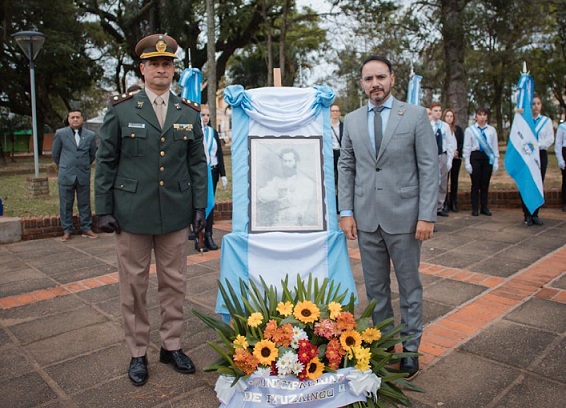 Ambos saludaron a las tropas formadas y luego de entonar el himno Nacional Argentino, depositaron una ofrenda floral a los pies de una Imagen del general Guemes.