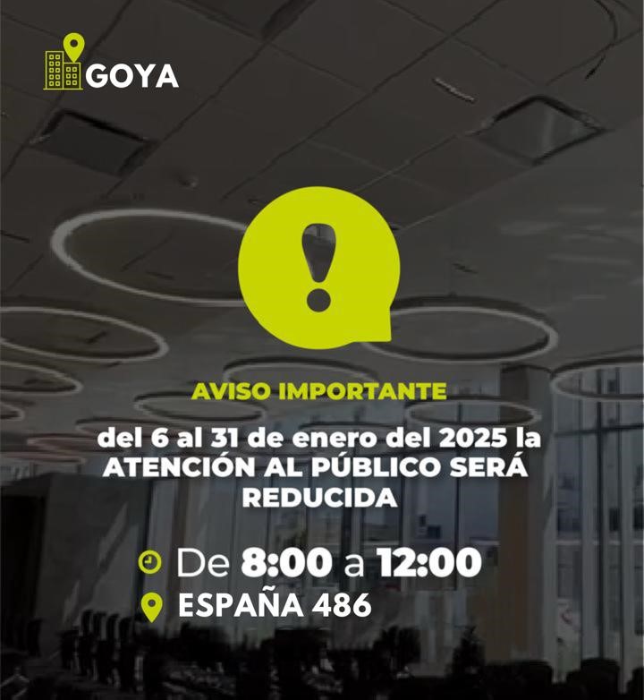 El Instituto de Previsión Social (IPS) informa a la comunidad que, debido a ajustes operativos, durante el periodo comprendido entre el 6 y el 31 de Eenero de 2025, se reducirá el horario de atención al público en su oficina ubicada en calle España 486 de nuestra ciudad.