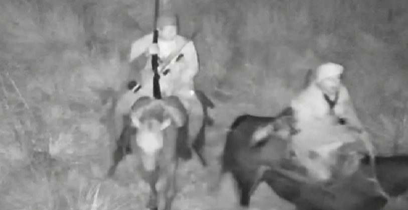 Las cámaras no fallaron: dos hombres a caballo, armados y metidos donde no debían, cerca de la 1 de la madrugada.