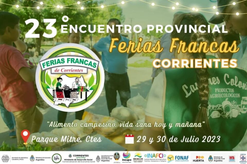 Sábado 29 y Domingo 30 de julio, en el Parque Mitre. Más de 300 feriantes y emprendedores correntinos, junto a delegaciones invitadas de varias provincias, darán vida al tradicional encuentro que reúne a productores y visitantes de toda la región para compartir alimentos frescos y naturales, conservas, chacinados, plantas, artesanías y manufacturas diversas.