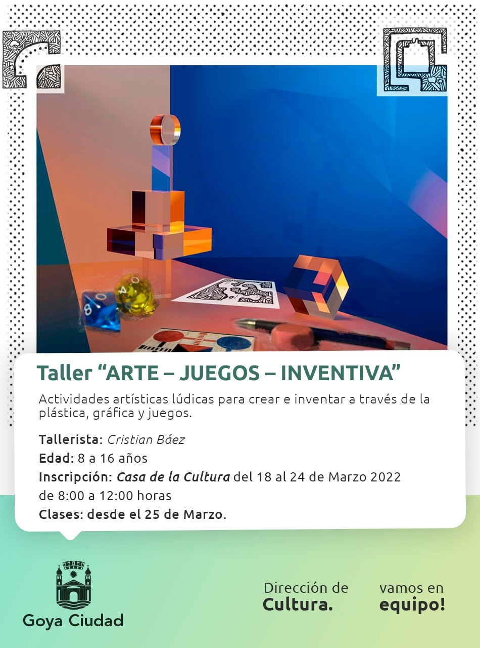 Desde la Dirección de Cultura se propone un taller para niños y adolescentes de 8 a 16 años, de arte, juegos e inventiva que dará inicio el próximo 25 de marzo, en Casa de la Cultura.