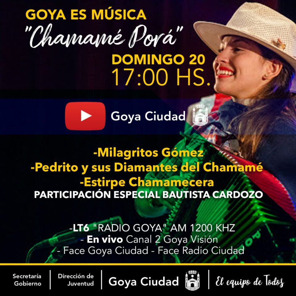 Con la organización de la Direccion de Juventud, dentro del programa Goya Es Música, este domingo desde las 17 horas disfruta desde tu casa del espectáculo con la música litoraleña “Chamame Pora”.