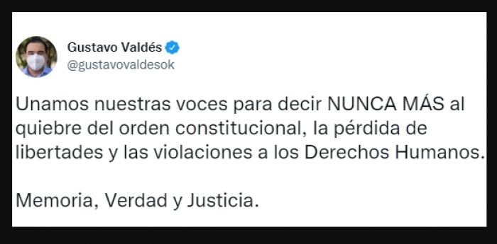 «‘Nunca más’ a la pérdida de libertades y violaciones de los derechos humanos», fue el mensaje que expresó el titular del Ejecutivo provincial por el Día Nacional de la Memoria por la Verdad y la Justicia.