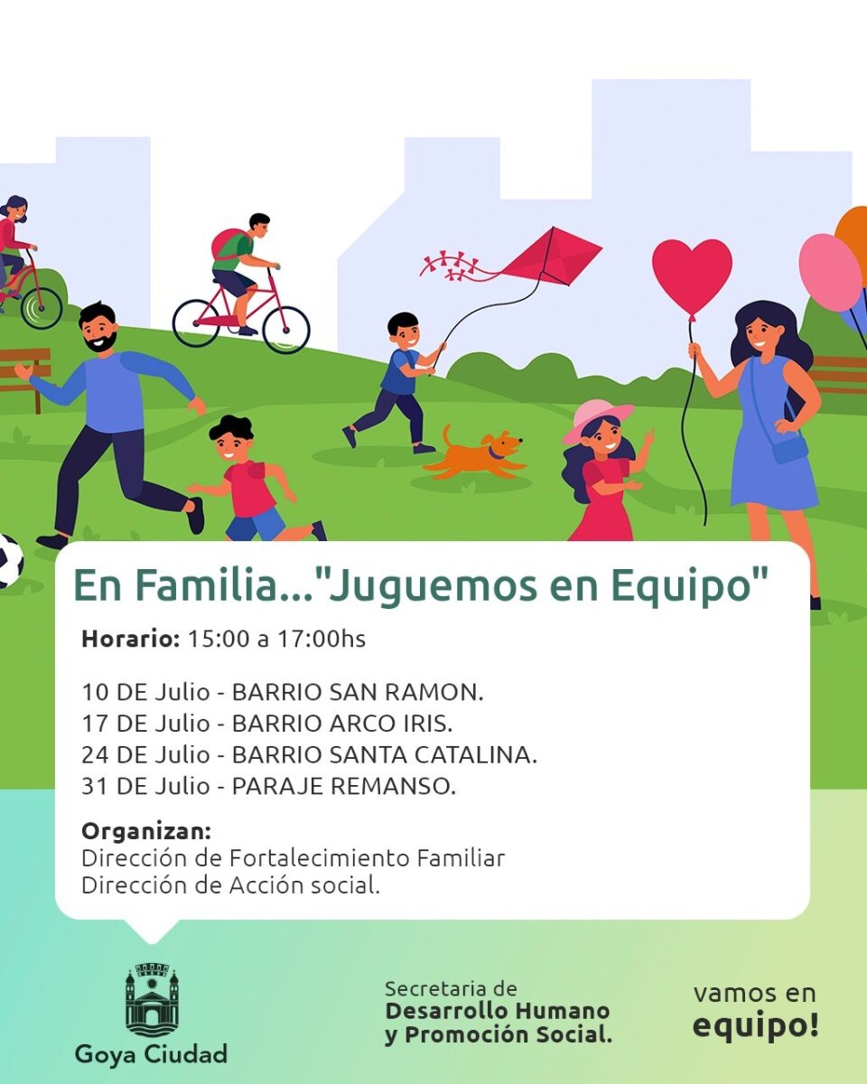 A partir de este domingo 10 de julio vuelve el programa En Familia Juguemos en Equipo, de la Secretaria de Desarrollo Humano organizado por las Direcciones de Fortalecimiento Familiar y de Acción Social.