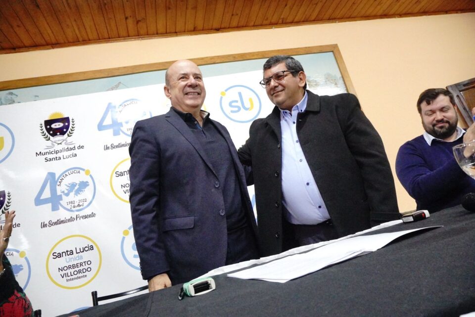 Gustavo Canteros, en representación de Yacyretá y el intendente de Santa Lucía Norberto Villordo suscribieron un Convenio de Cooperación para proveer del tendido de media y baja tensión a Santa Lucía.